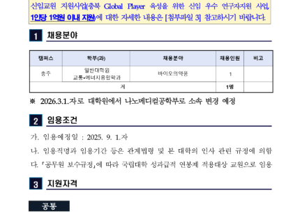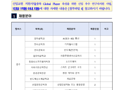 [5/22 마감] 2025년도 충북도립대학교 전문대학 혁신지원사업 기간제 근로자 채용_기간제 근로자 11명…