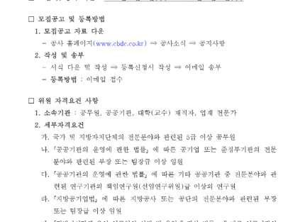 [4/9 마감] 충북개발공사 ’기술자문·심의위원회(3기)’후보자 추가(2차) 공모_8개분야: 토복, 소방, …