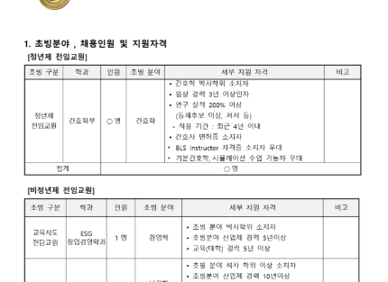 [2/20 마감]2026학년도 2차 전반기 교원 초빙 공고_ESG경영학 외_충북