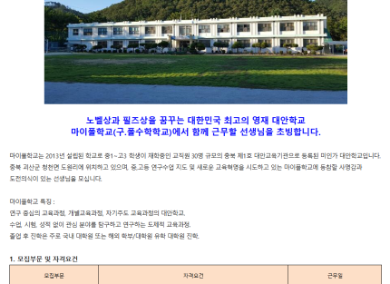 [1/25 마감] 마이폴학교 교사 모집(이공계, 생명과학, 바이오)