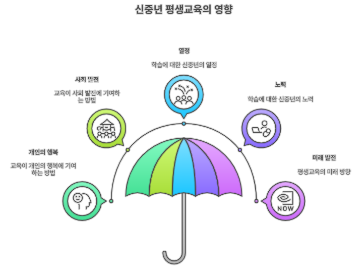 신중년 세대의 평생교육 참여는 개인적인 차원을 넘어 사회 전체에 긍정적인 영향을 미칩니다.