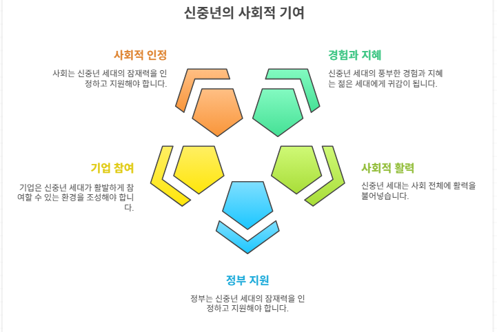 고령화 사회로 접어들면서 신중년 세대의 역할은 더욱 중요해지고 있습니다. 이들은 경제 활동의 주축으로서, 소비 시장의 중요한 부분을 차지하며, 사회적 연결망을 유지하는 데에도 기여합니다. 또한, 젊은 세대에게는 경험과 지혜를 전달하는 멘토로서의 역할도 수행합니다.