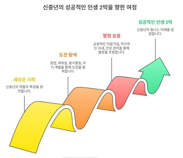 신중년 세대는 긍정적인 마음가짐과 적극적인 자세로 성공적인 인생 2막을 열어가고 있습니다. 이들은 변화에 대한 두려움을 극복하고, 새로운 도전을 통해 자아실현을 이루어냅니다.