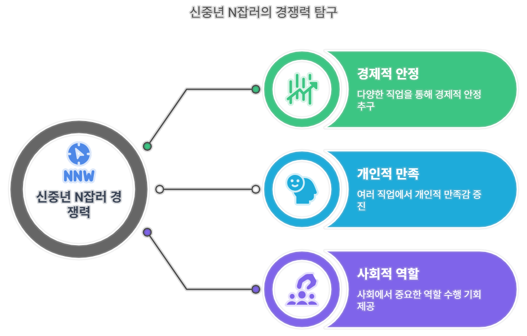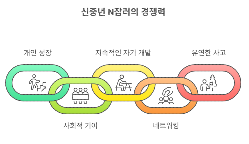 신중년 N잡러는 단순히 경제적 필요를 충족하는 것을 넘어, 개인의 성장과 사회적 기여를 동시에 이루는 중요한 역할을 하고 있습니다. 이러한 변화는 신중년 세대가 더욱 활발하게 사회에 참여하고, 새로운 가치를 창출하는 데 기여할 것입니다. N잡러로서의 경쟁력을 갖추기 위해서는 지속적인 자기 개발과 네트워킹, 그리고 유연한 사고가 필요합니다.