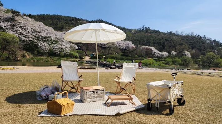 [진천=뉴시스] 충북 진천 농다리에서 주말에 무료 대여해주는 피크닉 세트. (사진=진천군 제공) photo@newsis.com *재판매 및 DB 금지