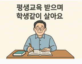 “평생교육 받으며 학생같이 살아요”의 의미를 자연스럽게 풀어보면 다음과 같습니다: