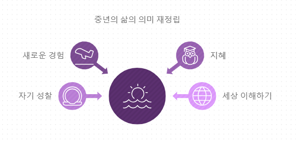 신중년기에 접어든 사람들은 종종 삶의 의미를 다시 생각하게 됩니다. 직업적 성공이나 사회적 지위가 중요한 가치로 여겨졌던 시기를 지나, 이제는 개인의 행복과 내면의 평화가 더욱 중요해집니다. 이 과정에서 많은 이들이 자아 탐색을 통해 진정한 자신을 발견하고, 새로운 목표를 설정하게 됩니다.