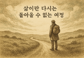 “삶이란 다시는 돌아올 수 없는 여정”이라는 문장은 인생의 유일성과 비가역성을 강조하는 표현이에요. 의미를 조금 더 풀어보면: