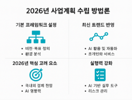 2026년 사업계획을 수립할 때는 전략적 프레임워크, 최신 트렌드 반영, 그리고 실행 가능성을 중심으로 접근하는 것이 핵심입니다. 최근 자료와 CEO 설문조사, 전문 워크숍 내용을 종합하면 다음과 같은 방법론을 추천합니다: