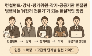 컨설턴트·강사·평가위원·작가·공공기관 면접관을 병행하는 ‘N잡러 전문가’가 되는 현실적인 방법입문 → 확장 → 고급화 단계로 정리한 실전 가이드입니다.