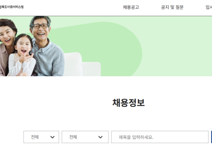 충청북도사회서비스원 채용리스트공고명2025년 제6차 충청북도사회서비스원 본부 직원채용 공고기관명충청북도사회서비스원조회61등..