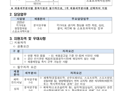[5/30 마감] 한국스포츠과학원 분석연구원 채용공고(국가대표 현장밀착형 스포츠과학지원_3차)_6명 모집