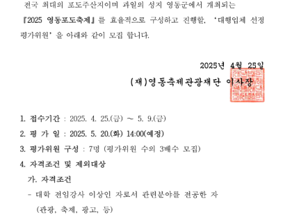[5/9 마감] 2025 영동포도축제 심사 평가위원 모집 공고
