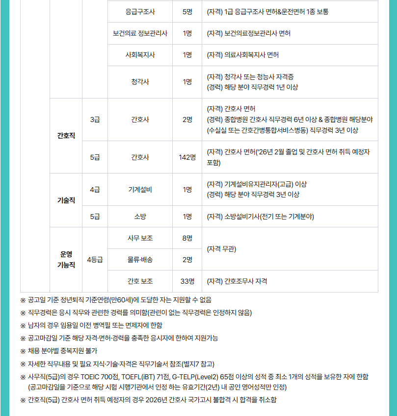 국립소방병원 채용정보 - 2026년 국립소방병원 상반기 신규직원 채용 공고
