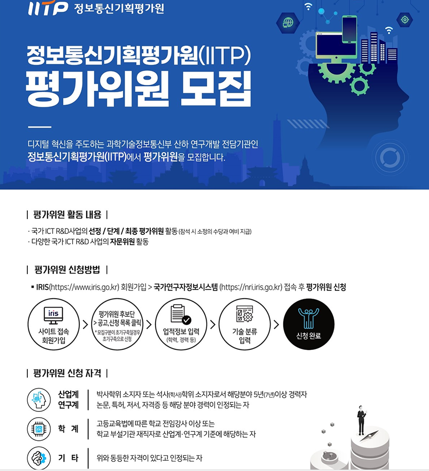 공공채용 정보통신기획평가원(IITP) 평가위원 모집 안내