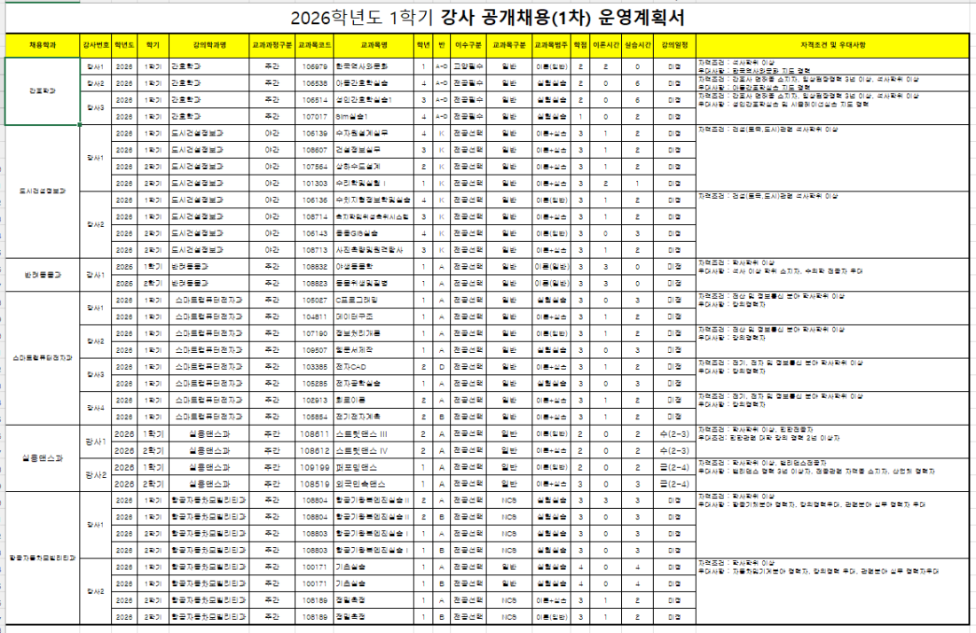 | 2026학년도 1학기 충청대학교 강사 초빙 공고(1차) | |