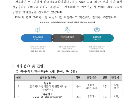 채용공고 | 채용정보 | 한국기초과학지원연구원KBSI와 함께 대한민국 과학기술미래를 열어갈 인재를 찾습니다한국기초과학지원연..