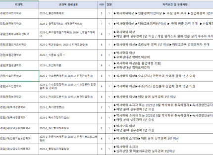 비전임(초빙, 겸임)_[4차] 2025학년도(2학기) 채용 공고작성자교학처(교무과)조회수465등록일2025-07-30 13..