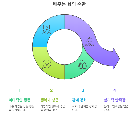 베푸는 삶은 개인의 사회적 관계를 강화하는 데 중요한 역할을 합니다. 이타적인 행동은 타인과의 신뢰를 구축하고, 협력적인 관계를 형성하는 데 기여합니다.