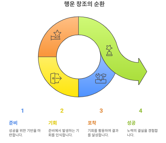 흔히 행운은 예측 불가능한 우연의 결과로 여겨집니다. 그러나 자세히 살펴보면, 행운은 우연적인 사건과 개인의 준비된 역량이 결합하여 만들어지는 경우가 많습니다. 즉, 행운은 단순히 하늘에서 떨어지는 선물이 아니라, 꾸준한 노력과 준비를 통해 얻을 수 있는 기회를 포착하는 능력입니다.