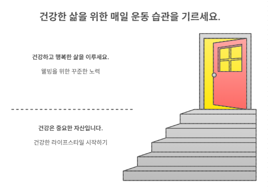 건강은 삶의 가장 중요한 자산 중 하나입니다. 매일 1시간씩 운동하는 습관을 통해 건강을 증진시키고 행복한 삶을 영위할 수 있습니다. 실천적인 운동 계획을 세우고 꾸준한 운동을 위한 동기 부여 전략을 활용하여 건강한 라이프스타일을 만들어나가세요. 건강한 삶은 노력의 결과이며, 꾸준한 노력을 통해 얻을 수 있습니다.