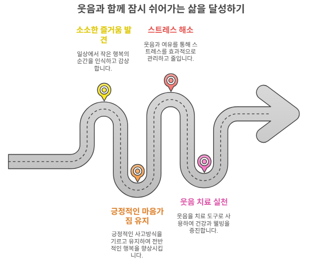 웃으면서 잠시 쉬어가는 삶은 바쁜 일상 속에서 잊고 지내기 쉬운 소중한 가치입니다. 웃음의 힘을 믿고, 소소한 즐거움을 찾으며, 긍정적인 마음가짐을 유지하고, 스트레스를 효과적으로 해소하는 방법을 실천하여 웃음과 행복이 가득한 삶을 만들어가세요. 지금 바로 웃으면서 잠시 쉬어가는 삶을 시작하세요!