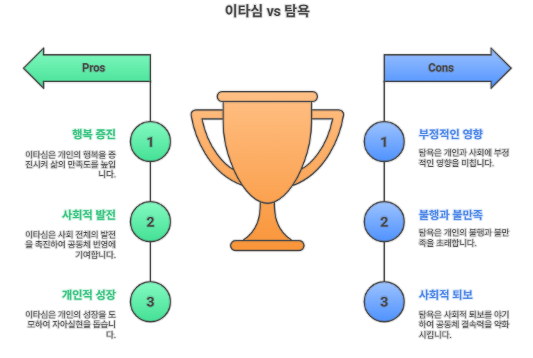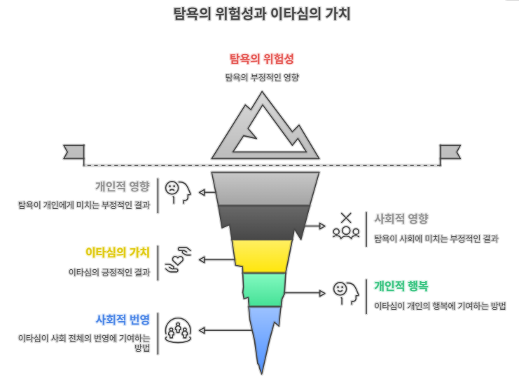 이타심은 타인의 행복을 우선시하고, 타인을 돕는 행동을 의미합니다. 이타적인 삶은 개인과 사회에 긍정적인 영향을 미치며, 행복과 번영을 가져다줍니다.