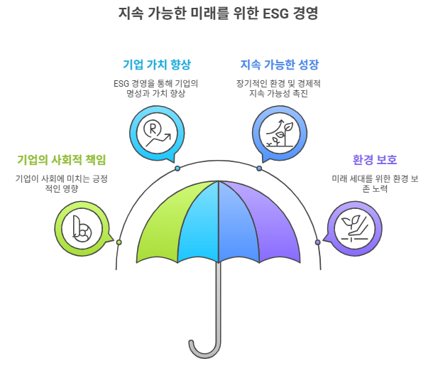 기업 가치 향상: ESG 경영은 기업의 이미지 제고, 투자 유치, 우수 인재 확보 등에 긍정적인 영향을 미쳐 기업 가치를 향상시킬 수 있습니다.