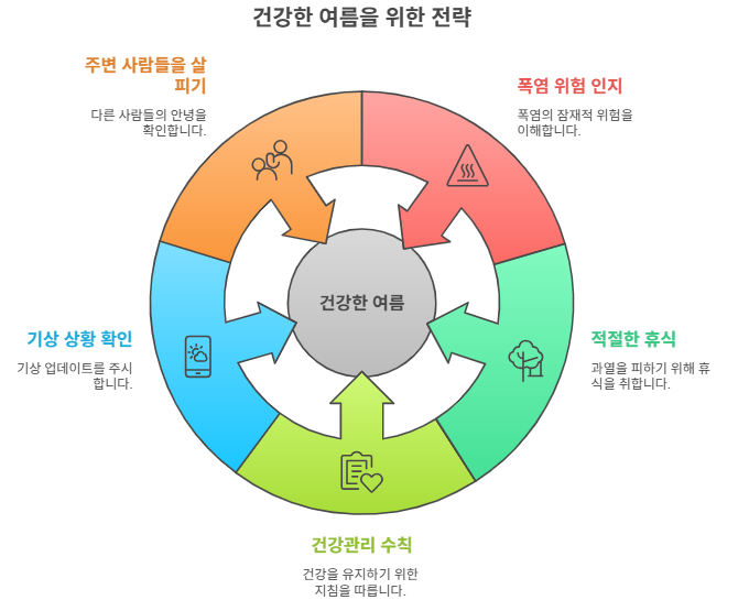 본 문서는 기록적인 폭염이 지속되는 상황에서, 건강을 지키고 안전하게 여름을 나기 위한 휴식 및 건강관리 방법을 상세히 안내합니다. 폭염의 위험성을 인지하고, 적절한 휴식과 건강관리 수칙을 준수함으로써 온열질환을 예방하고 건강한 여름을 보내는 데 도움이 될 것입니다.