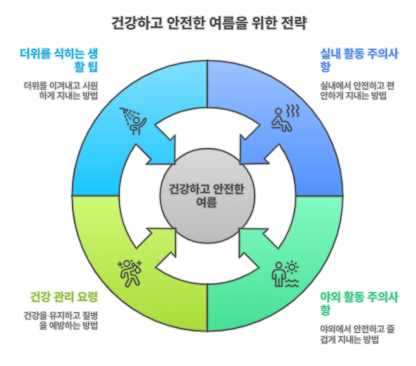 본 문서는 기록적인 폭염이 지속되는 가운데, 건강하고 안전하게 여름을 나는 다양한 방법들을 제시합니다. 실내외 활동 시 주의사항, 건강 관리 요령, 그리고 더위를 식히는 데 도움이 되는 생활 팁들을 종합적으로 제공하여, 독자들이 무더위 속에서도 쾌적하고 건강한 여름을 보낼 수 있도록 돕는 것을 목표로 합니다.