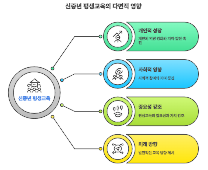 신중년 세대의 평생교육 참여는 개인적인 차원을 넘어 사회 전체에 긍정적인 영향을 미칩니다.