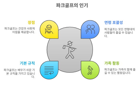 가족 친화적: 파크골프는 모든 연령대가 쉽게 접근할 수 있어 가족 단위로 즐기기에 적합합니다.