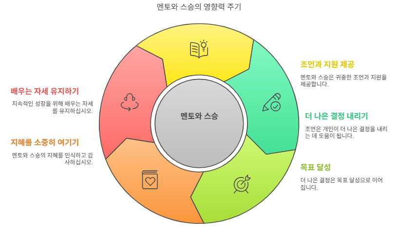 멘토와 스승은 인생의 여러 단계에서 중요한 역할을 합니다. 그들의 조언과 지원은 우리가 더 나은 결정을 내리고, 목표를 달성하는 데 큰 도움이 됩니다. 따라서, 우리는 멘토와 스승의 존재를 소중히 여기고, 그들의 지혜를 통해 성장해 나가야 합니다. 인생의 여정에서 그들의 가르침을 잊지 말고, 언제나 열린 마음으로 배우는 자세를 유지하는 것이 중요합니다.