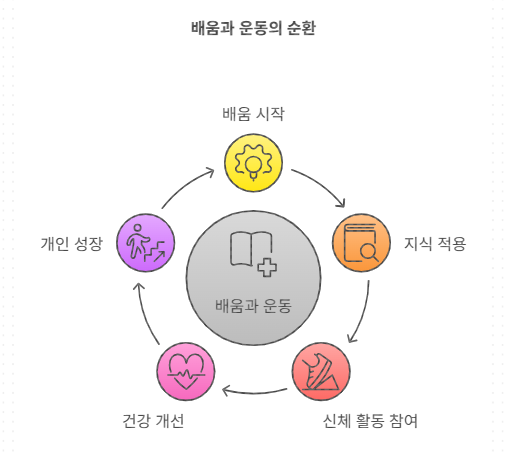 배움과 운동은 서로 보완적인 관계에 있습니다. 예를 들어, 운동을 통해 얻은 에너지는 학습 능력을 향상시키고, 학습을 통해 얻은 지식은 운동의 효율성을 높일 수 있습니다. 따라서 두 가지 활동을 통합하여 실천하는 것이 중요합니다.