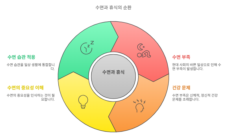 적절한 수면과 휴식은 건강을 유지하는 데 필수적입니다. 이를 통해 신체적, 정신적 건강을 증진시키고, 삶의 질을 향상시킬 수 있습니다. 바쁜 일상 속에서도 수면과 휴식을 소중히 여기고, 이를 생활화하는 것이 중요합니다.