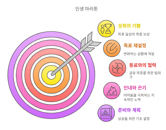마라톤을 준비하는 과정은 철저한 계획과 훈련이 필요합니다. 마찬가지로 인생에서도 목표를 설정하고 이를 달성하기 위한 계획을 세우는 것이 중요합니다. 목표가 명확할수록 그에 맞는 행동을 취할 수 있으며, 이는 성공적인 삶으로 이어질 수 있습니다.
