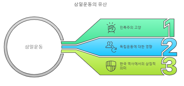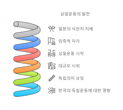 삼일독립만세운동은 한국의 식민지 독립을 위한 중요한 전환점이었습니다. 이 운동은 한국인들에게 독립에 대한 열망을 심어주었고, 이후의 독립운동에 큰 영향을 미쳤습니다. 한국의 역사에서 삼일독립만세운동은 단순한 시위를 넘어, 민족의 자주성을 찾기 위한 끊임없는 노력의 상징으로 남아 있습니다.