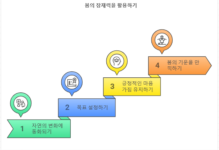 봄이 오면 자연은 다시 생명력을 얻고, 꽃들이 피어나고 나무들이 푸르러집니다. 이러한 변화는 우리에게도 긍정적인 영향을 미칩니다. 따뜻한 날씨와 함께 산책을 하거나, 꽃을 감상하며 마음의 여유를 찾는 것은 새로운 시작을 위한 좋은 방법입니다.