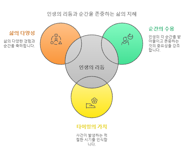 "모든 일은 때가 있다"는 단순한 격언처럼 보일 수 있지만, 그 안에는 깊은 의미가 담겨 있습니다. 우리는 인생의 다양한 순간들을 받아들이고, 각 사건이 발생하는 시점을 존중해야 합니다. 이를 통해 우리는 더 나은 삶을 살아갈 수 있을 것입니다.