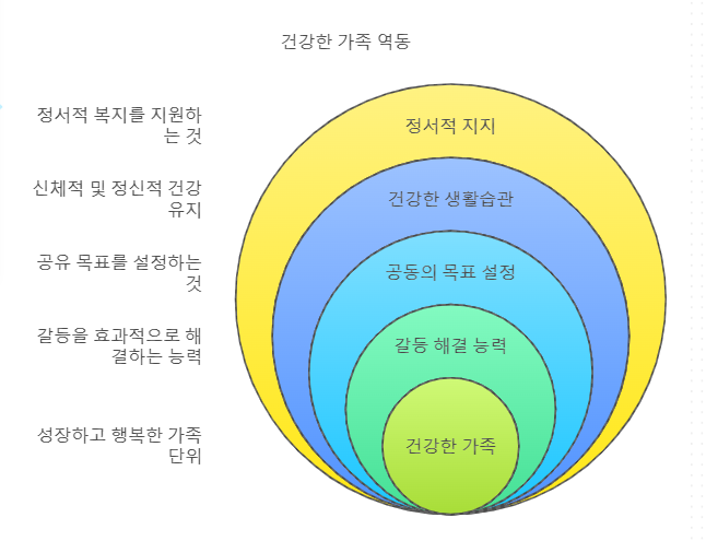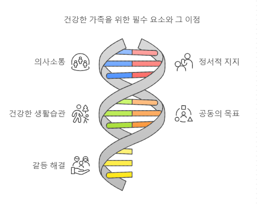 건강한 가족은 서로를 키우고 채워주는 존재입니다. 의사소통, 정서적 지지, 건강한 생활습관, 공동의 목표 설정, 갈등 해결 능력 등 다양한 요소들이 결합되어 건강한 가족을 만들어갑니다. 이러한 가족의 환경 속에서 각 구성원은 더욱 성장하고 행복한 삶을 누릴 수 있습니다. 가족의 소중함을 인식하고, 서로를 지지하며 함께 나아가는 것이 중요합니다.