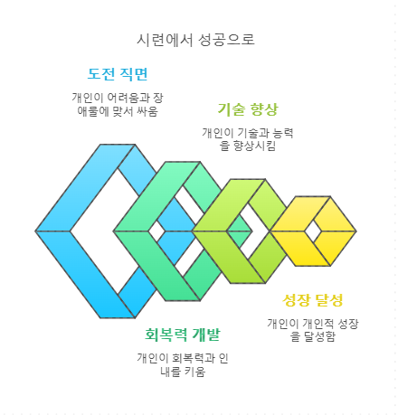 자신감과 자아 존중감: 시련을 극복한 후 우리는 자신감이 생기고, 자신의 능력에 대한 믿음이 커집니다. 이는 다음 도전에도 긍정적인 영향을 미치며, 성공으로 이어질 가능성을 높입니다.