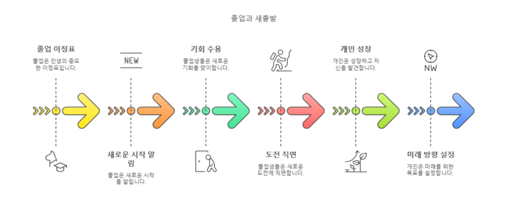 졸업과 새출발은 인생의 중요한 전환점입니다. 이 시기를 통해 우리는 과거를 돌아보고, 미래를 향한 새로운 발걸음을 내딛게 됩니다. 졸업은 끝이 아니라 새로운 시작임을 기억하며, 앞으로의 여정을 긍정적으로 바라보는 것이 중요합니다. 새로운 도전과 기회를 맞이할 준비를 하며, 자신만의 길을 걸어가길 바랍니다.