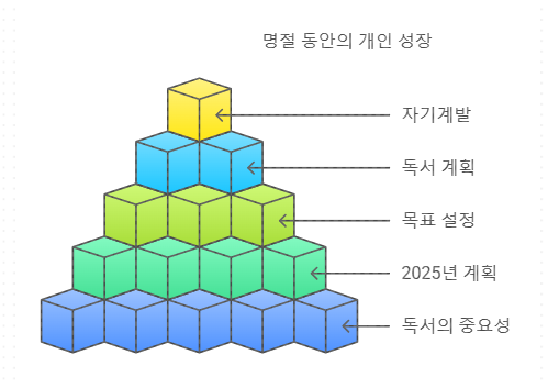 설날 명절 연휴는 가족과의 소중한 시간을 보내는 동시에, 개인의 성장을 위한 독서와 계획을 세울 수 있는 좋은 기회입니다. 2025년을 준비하며 목표를 설정하고, 독서를 통해 지식을 쌓아가는 시간을 가지길 바랍니다. 이러한 노력이 여러분의 삶에 긍정적인 변화를 가져오길 기대합니다.