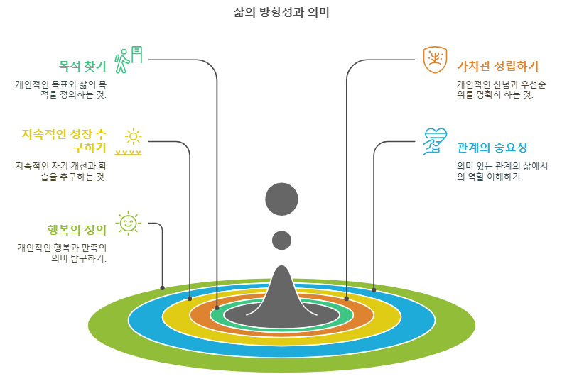 삶의 목적은 개인마다 다를 수 있습니다. 어떤 사람은 가족과의 관계에서, 또 어떤 사람은 직업적 성취에서 의미를 찾습니다. 자신에게 중요한 것이 무엇인지 고민해보는 것이 첫걸음입니다. 이를 위해 다음과 같은 질문을 스스로에게 던져보세요.