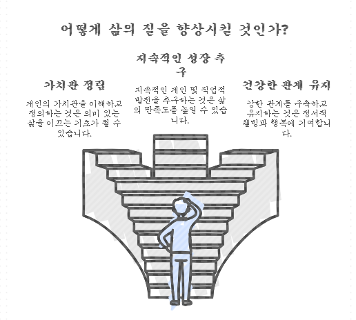 삶을 어떻게 살 것인가에 대한 질문은 단순한 답을 찾기 어려운 복잡한 문제입니다. 그러나 자신의 가치관을 정립하고, 지속적인 성장을 추구하며, 건강한 관계를 유지하는 것이 삶의 질을 높이는 데 도움이 됩니다. 각자의 길을 찾아가며, 행복한 삶을 만들어 나가기를 바랍니다.
