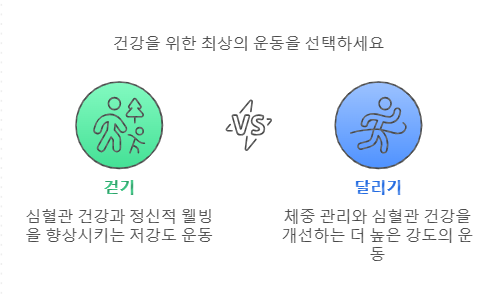 걷기와 달리기는 건강을 유지하고 증진시키는 데 매우 효과적인 운동입니다. 개인의 체력과 목표에 맞춰 적절한 운동을 선택하고 꾸준히 실천한다면, 신체적, 정신적 건강 모두를 향상시킬 수 있습니다. 건강한 삶을 위해 오늘부터 걷기 또는 달리기를 시작해보세요!