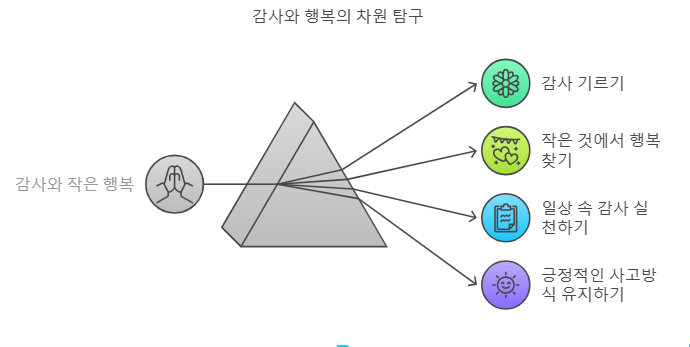 이 문서는 감사의 중요성과 작은 것에서 행복을 찾는 방법에 대해 다룹니다. 현대 사회에서 우리는 종종 큰 성취나 물질적인 것에만 집중하게 되지만, 일상 속의 작은 것들에서 진정한 행복을 발견할 수 있습니다. 이 글을 통해 감사의 마음을 기르고, 작은 것에서 행복을 느끼는 방법을 알아보겠습니다.