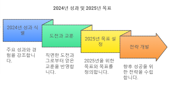 이 문서를 통해 2024년의 경험을 되새기고, 2025년의 목표를 명확히 하여 더욱 발전하는 한 해가 되기를 바랍니다.