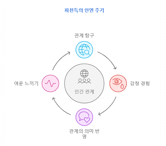 피천득은 인연을 단순한 관계가 아닌, 삶의 중요한 요소로 묘사합니다. 인연은 사람과 사람 사이의 연결고리이며, 그 연결은 때로는 기쁨을, 때로는 슬픔을 가져옵니다. 이러한 인연은 우리가 살아가는 데 있어 필수적인 요소로, 서로의 삶에 깊은 영향을 미칩니다.