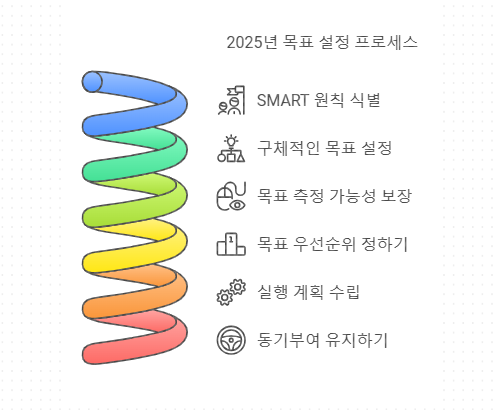 2025년도 목표를 선명하게 확정하는 것은 개인의 성장과 발전에 큰 영향을 미칩니다. SMART 원칙을 활용하여 구체적이고 측정 가능한 목표를 설정하고, 우선순위를 정하며, 실행 계획을 수립하는 과정은 성공적인 목표 달성의 기초가 됩니다. 동기부여를 유지하며 목표를 향해 나아간다면, 원하는 성과를 이룰 수 있을 것입니다.